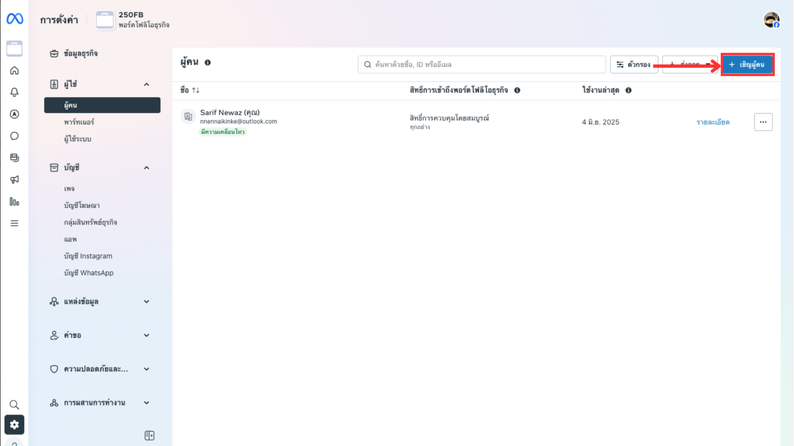 เพิ่มบุคคล ผ่านบัญชีธุรกิจ