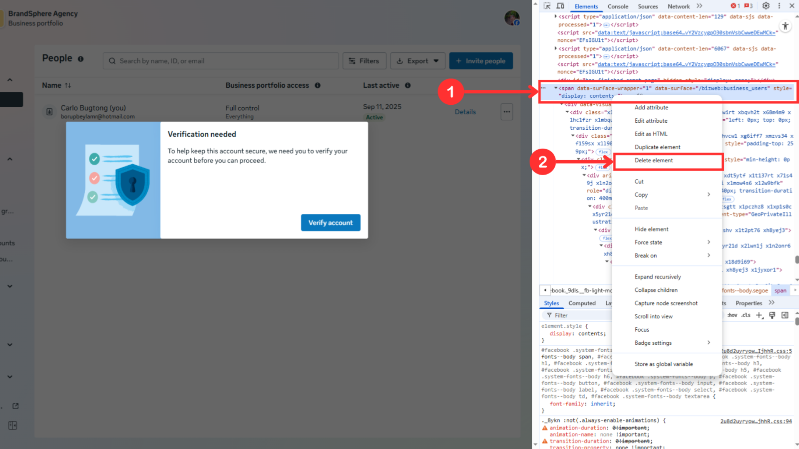 หลายคนอาจเจอปัญหาเมื่อเข้าใช้งาน Business Manager (BM) แล้วระบบขึ้นแจ้งให้ยืนยันอีเมลก่อนดำเนินการต่อ สามารถแก้ไขได้ภายในไม่กี่นาที เพียงใช้เครื่องมือ Developer Tool ของเบราว์เซอร์ (F12)