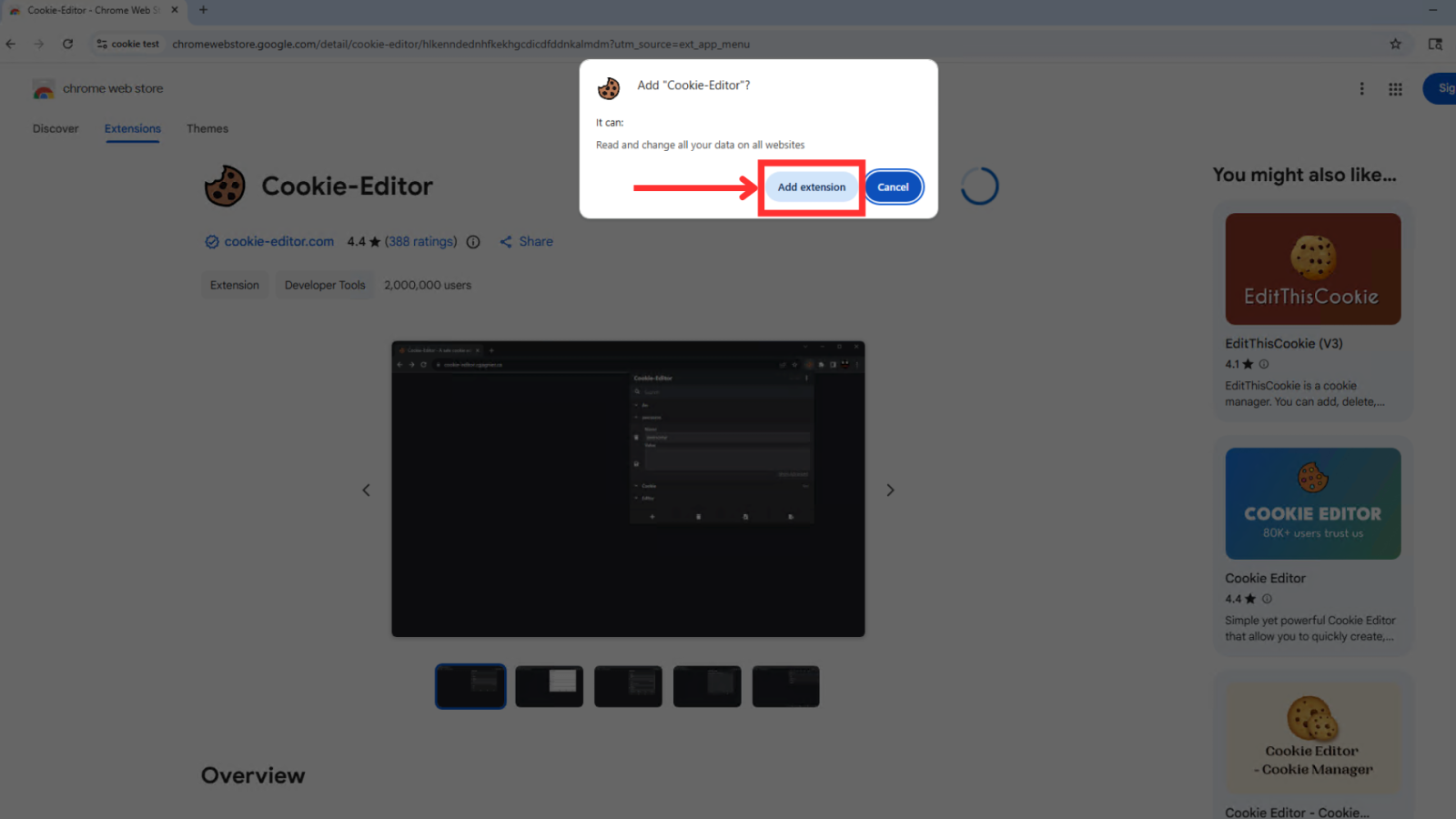 - เลือก Extention Cookie-Editor