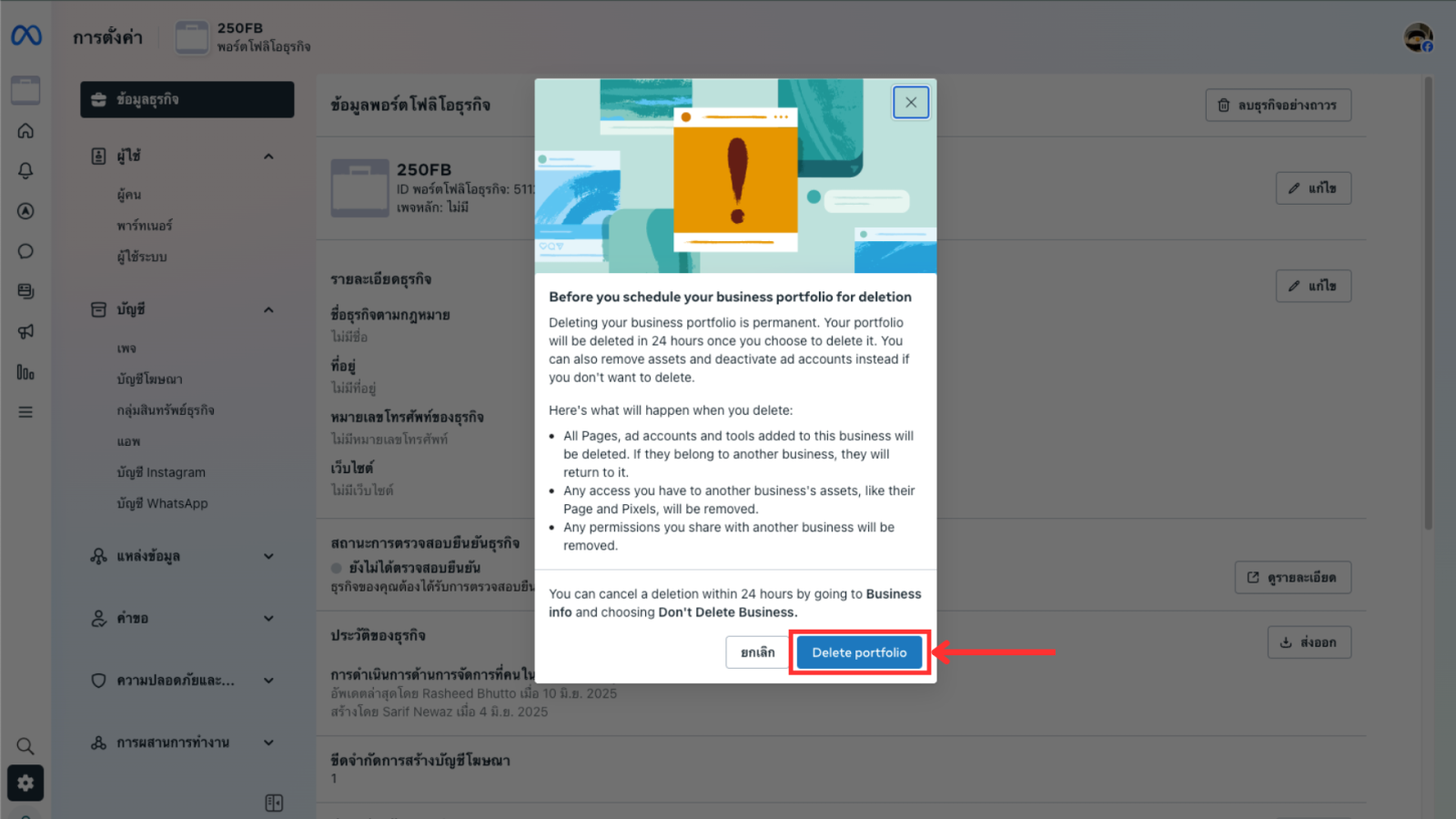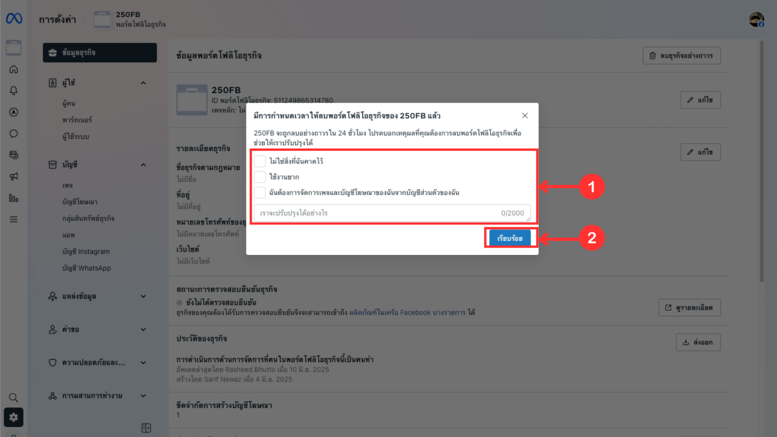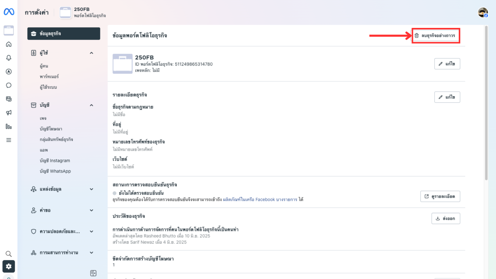 ขั้นตอนการลบบัญชีธุรกิจออกจากบัญชีโฆษณา