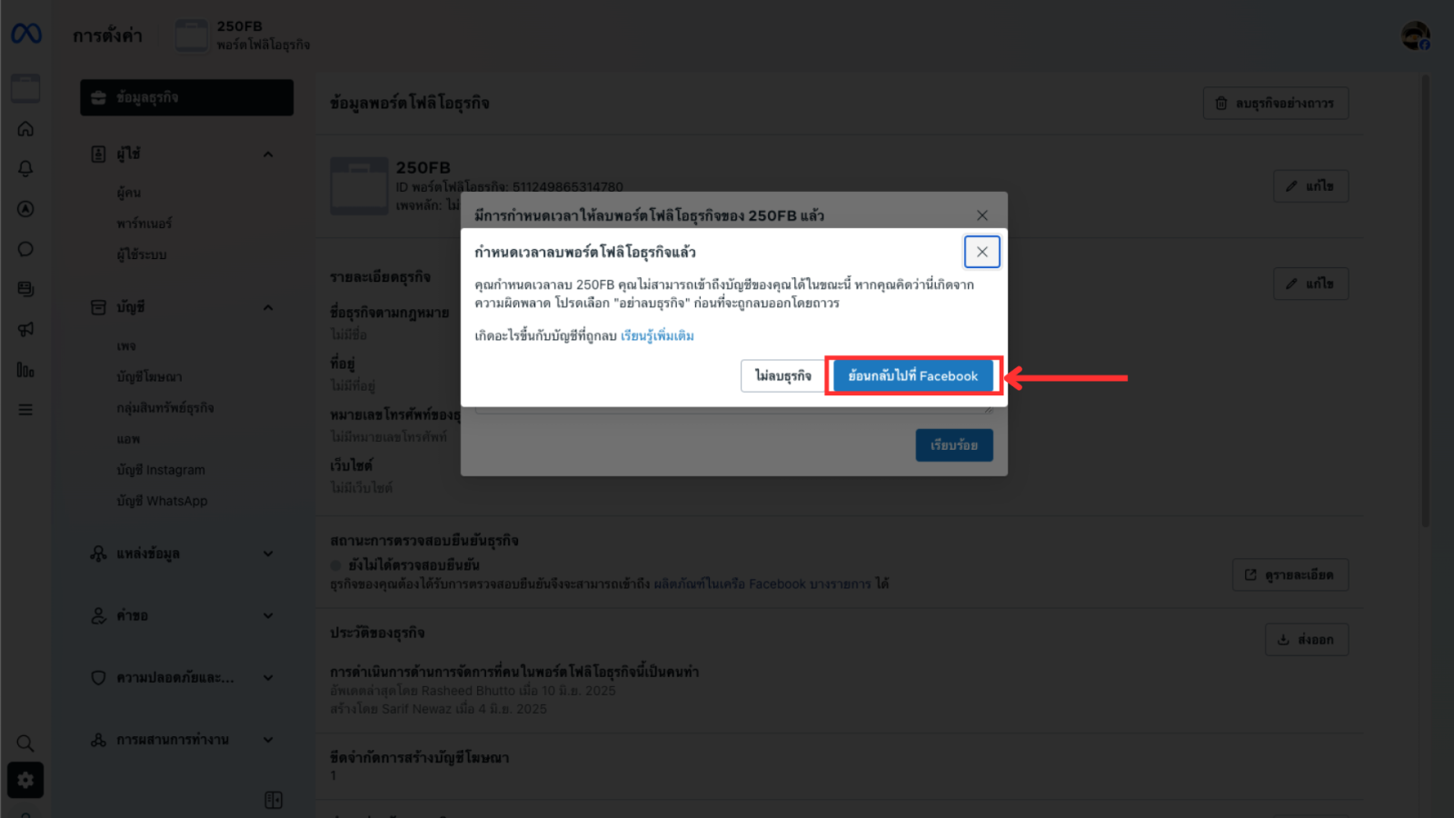วิธีลบบัญชีธุรกิจ ออกจากบัญชีโฆษณา