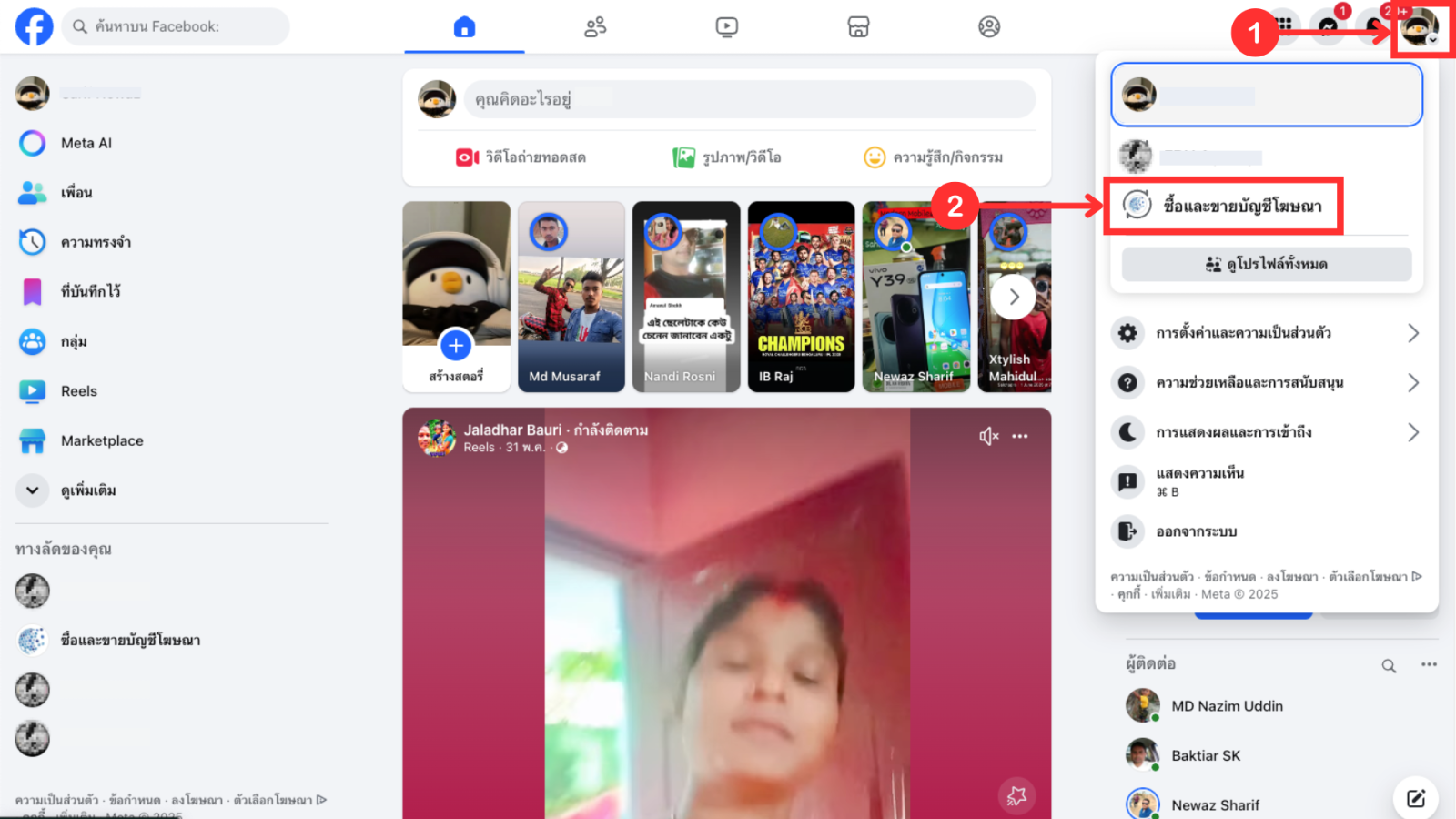 1. แตะไปที่โปรไฟล์ด้านขวาบนและแตะไปที่เพจที่เราจะสลับไปใช้งานและไปที่โปรไฟล์เพจ