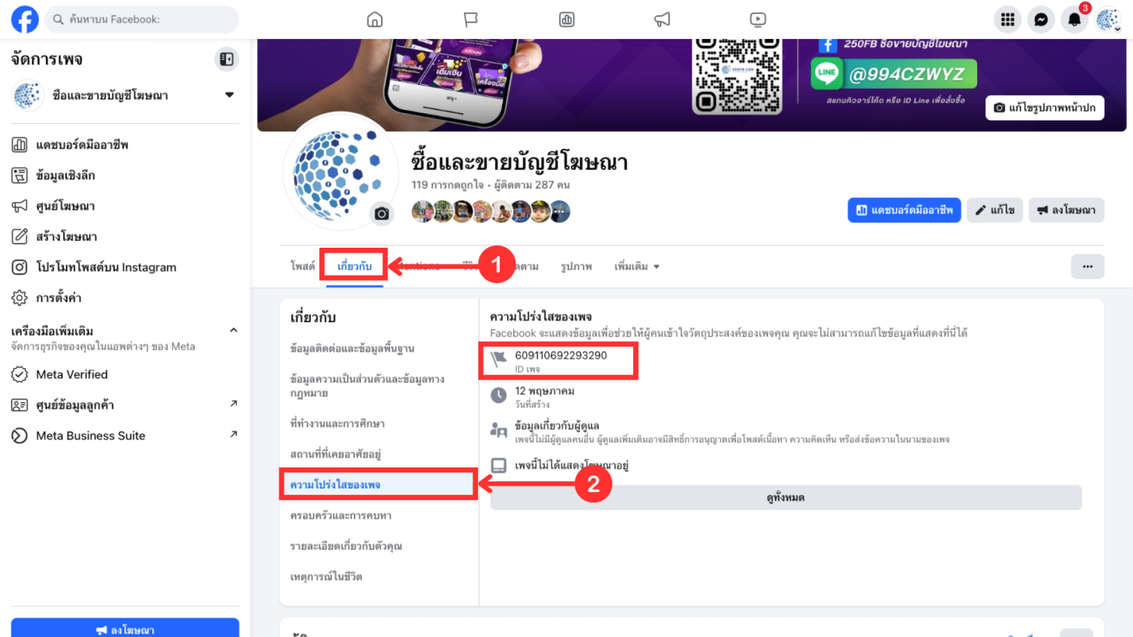 3. แตะไปที่ความโปร่งใสและจะเห็นIDเพจ