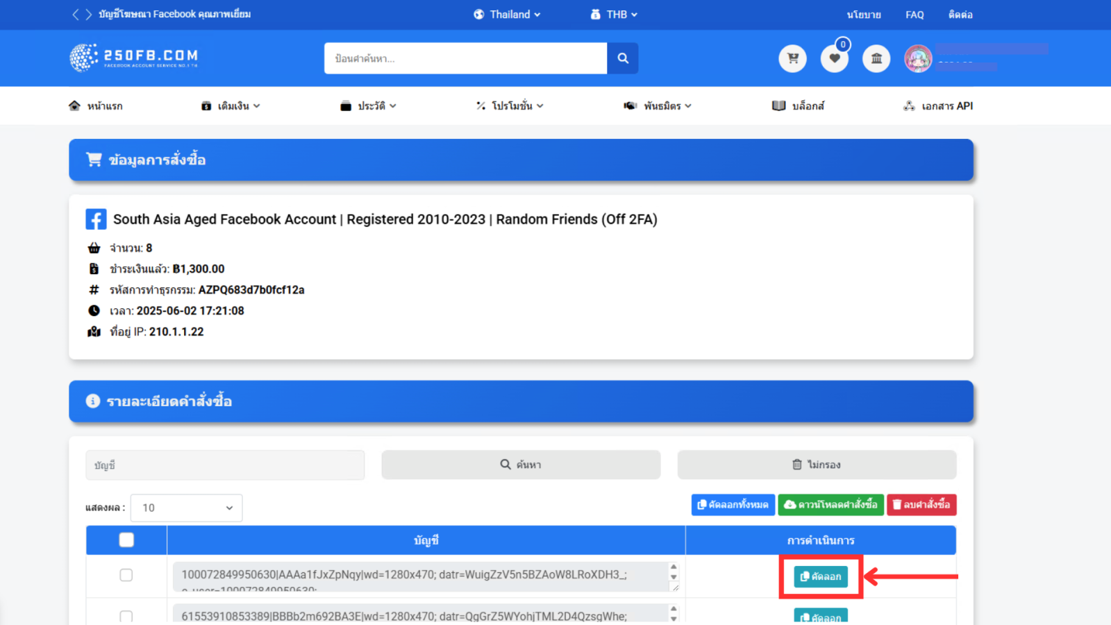 4. เมื่อสั่งซื้อสินค้าเรียบร้อย สามารถนำข้อมูลที่ได้รับไปใช้งานได้ทันที